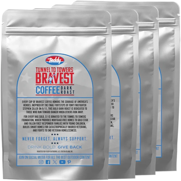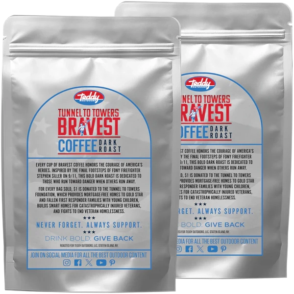 Teddy Outdoors is honored to partner with the Tunnel to Towers Foundation on Bravest Coffee. Your purchase fuels a mission that cares for the families of those who served. With $1 donated from every bag, this collaboration turns daily coffee into real, tangible impact.$1 per bag → Mortgage-Free Homes for Heroes